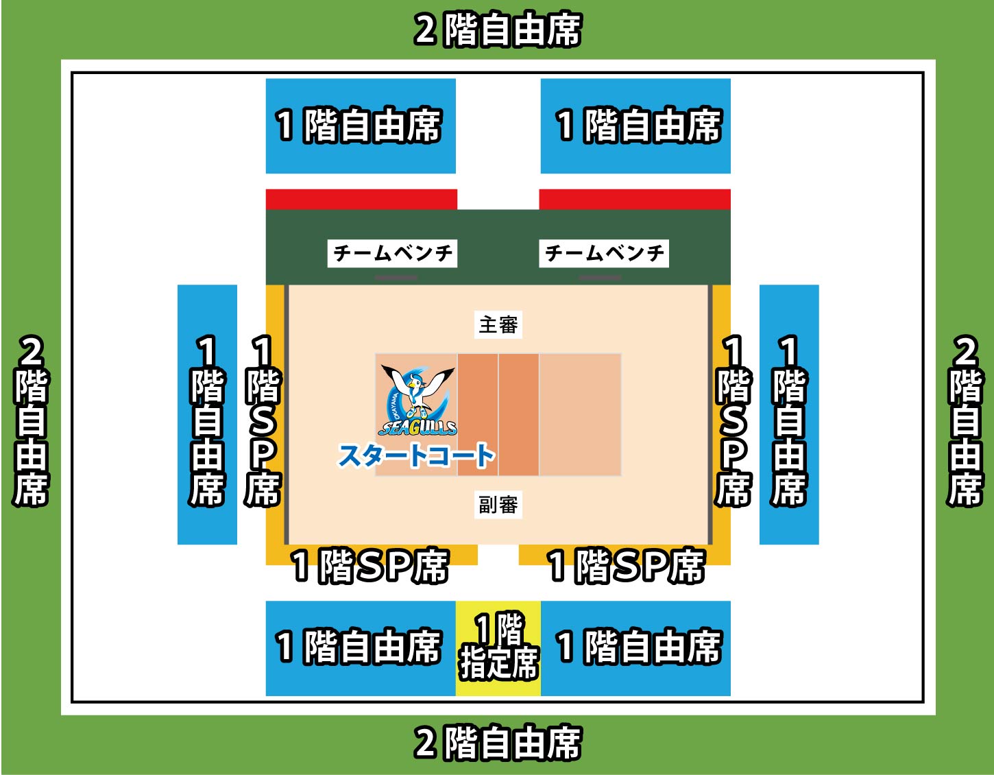 ※1階SP席(北側)の真ん中付近(ネット付近)はオフィシャル撮影用のスペースがあります。