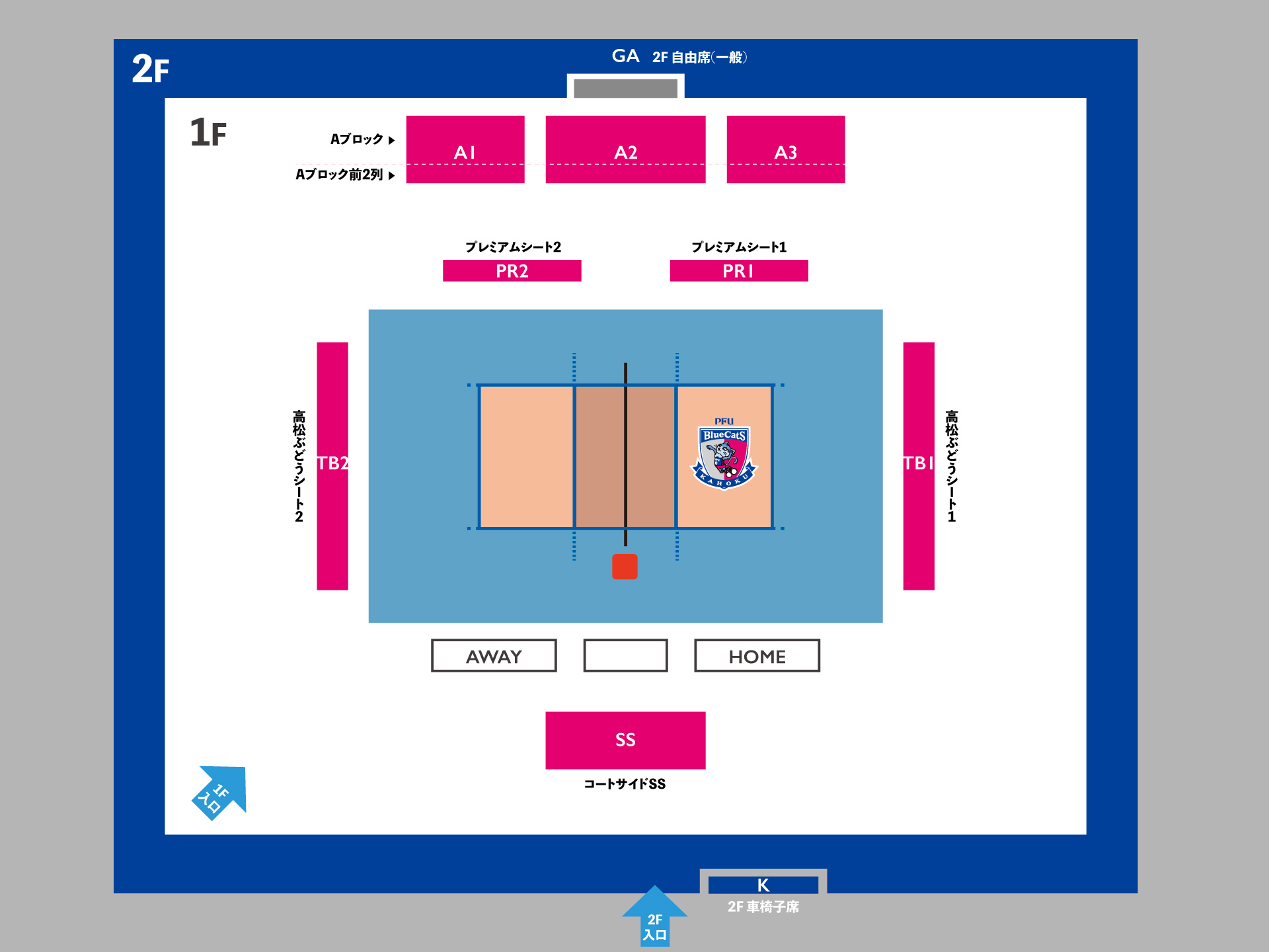 ※PFUブルーキャッツ石川かほくのスタートコートは、ベンチ側から見て右側です。