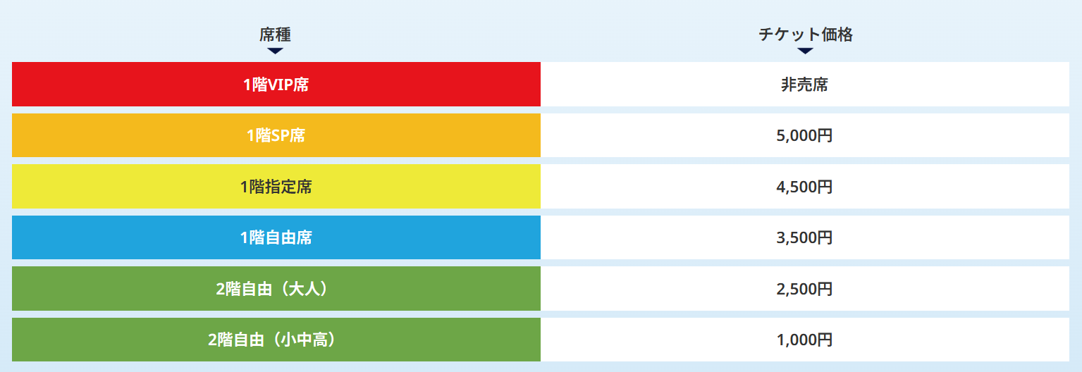 ※自由席はチケット販売名称【自由席】、車椅子席は同じく【車椅子席】からご購入ください