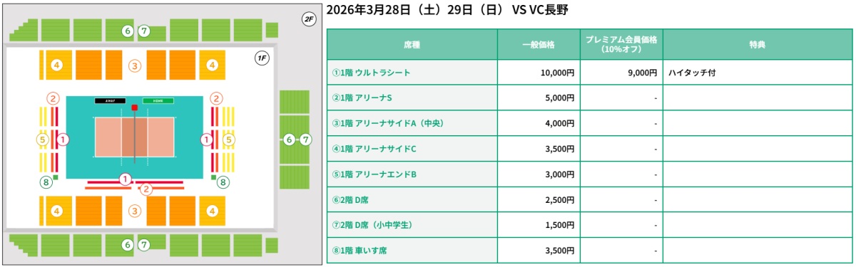 1Fウルトラシート、1FアリーナS、1F車いす席