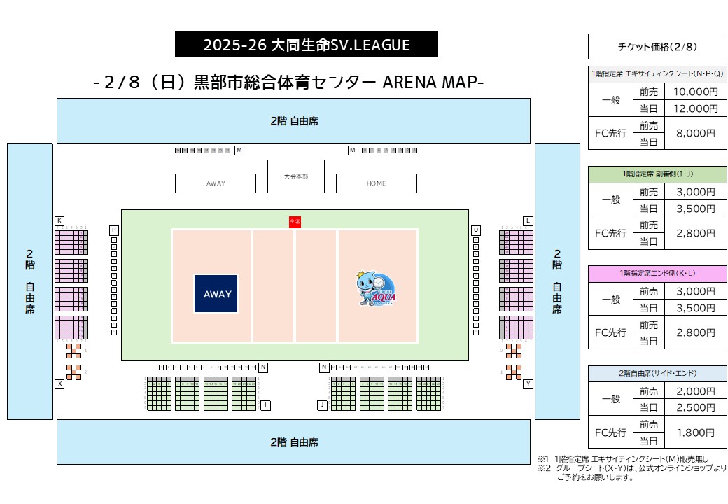 ※車いす席をご予約の際は、アクアフェアリーズ事務局(0765-57-3503)までご連絡ください。