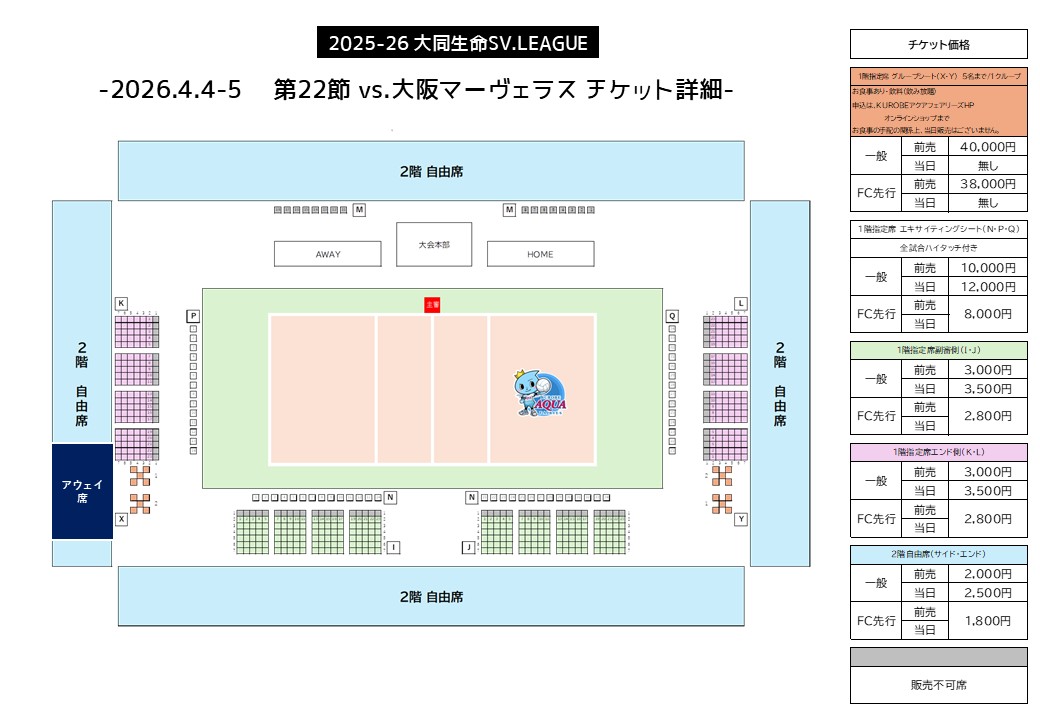※車いす席をご予約の際は、アクアフェアリーズ事務局(0765-57-3503)までご連絡ください。