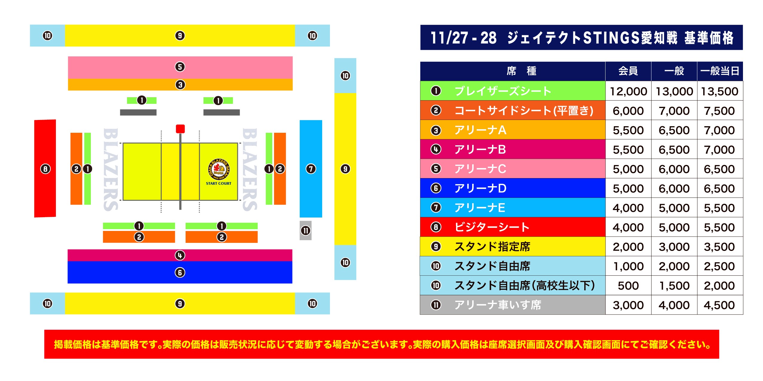 ・ベンチ裏側のお席やコート周辺のお席(BZシート、アリーナ各席種)については、選手やチームスタッフ、競技運営上の機材が観戦の妨げとなる可能性がございます。あらかじめご了承の上チケットをご購入ください。