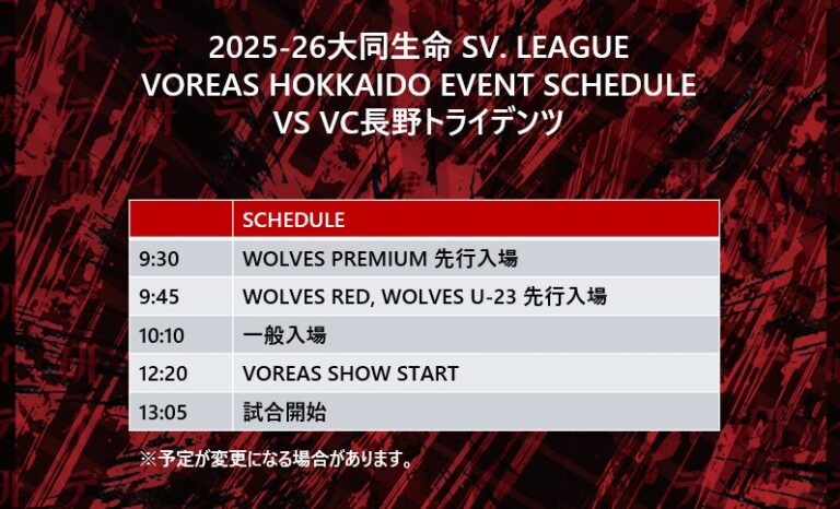 ※開場時間、試合開始時間は変更になる可能性があります。