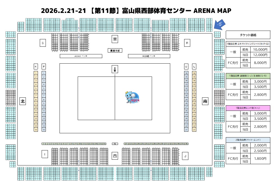 ※車いす席をご予約の際は、アクアフェアリーズ事務局(0765-57-3503)までご連絡ください。