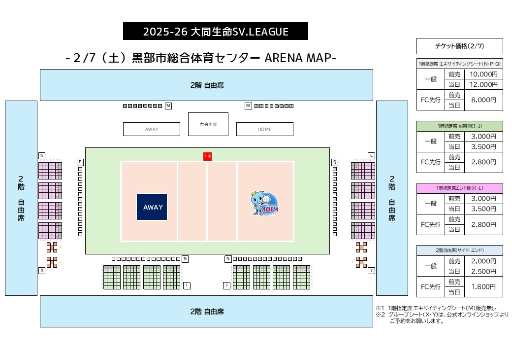 ※車いす席をご予約の際は、アクアフェアリーズ事務局(0765-57-3503)までご連絡ください。